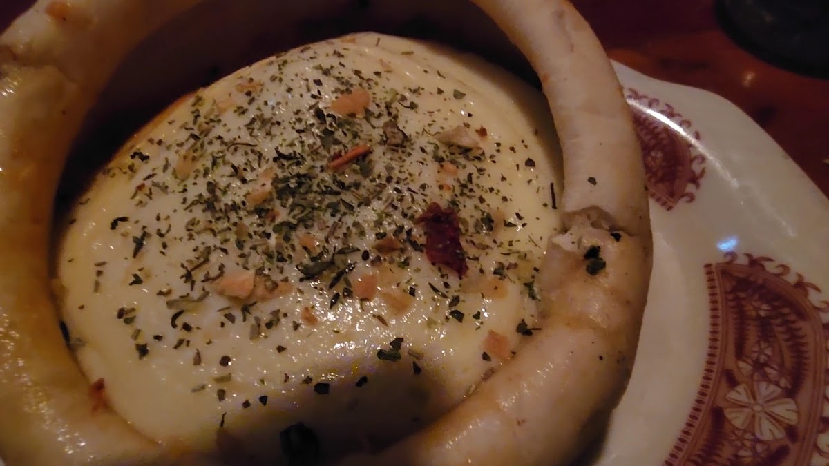 Home of the pot pie pizza. It was really good. The flat bread was great! The dressings were all delicious. Soda, you have to pay for each glass which is a bummer. Tables are small and hard to move food around. Staff is really friendly. It’s worth a stop and the building had a long standing history that you can read about on the menu.